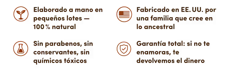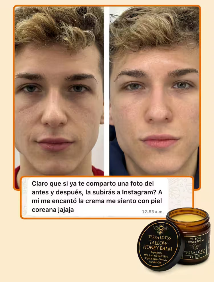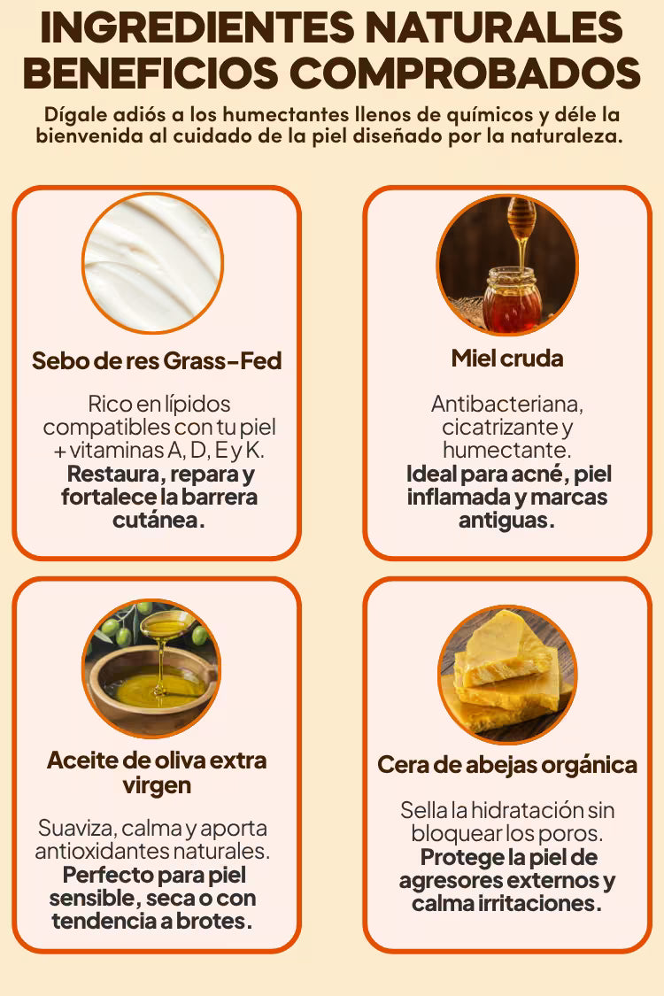 Sebo de res grass-fed, miel cruda, cera de abejas orgánica y aceite de oliva. Nada más.
