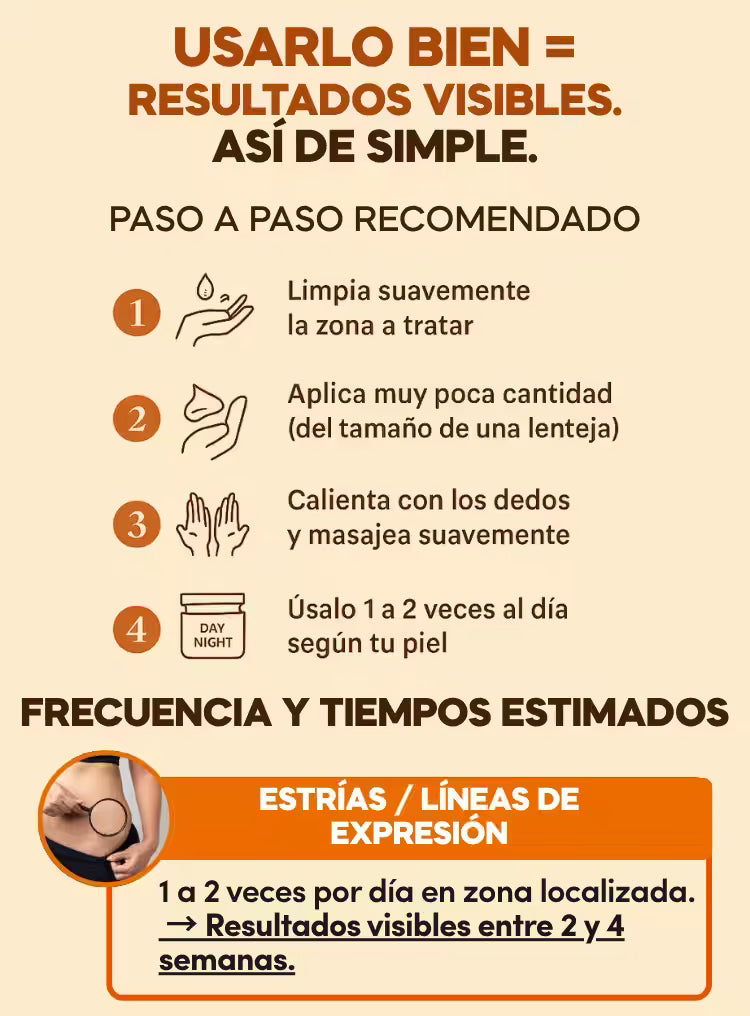La mayoría nota cambios entre 3 y 7 días. Con uso constante, mejora textura, tono y marcas.