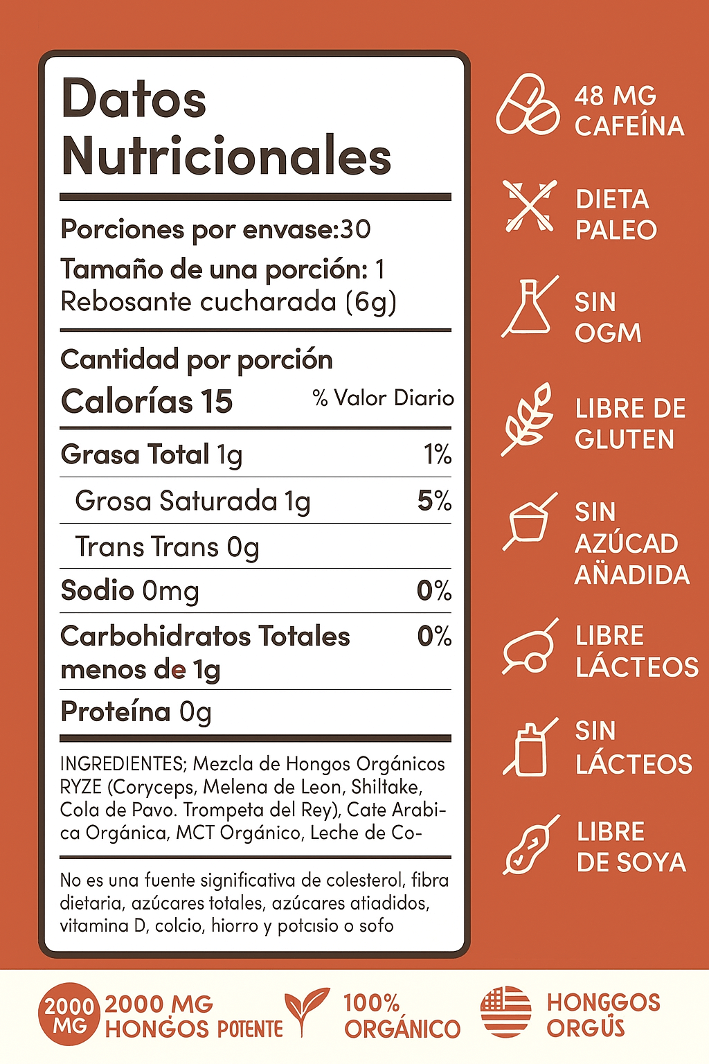 30 dosis en 1 bolsa:Cada bolsa contiene 30 dosis de RYZE, perfectamente porcionados para facilitar su uso.
