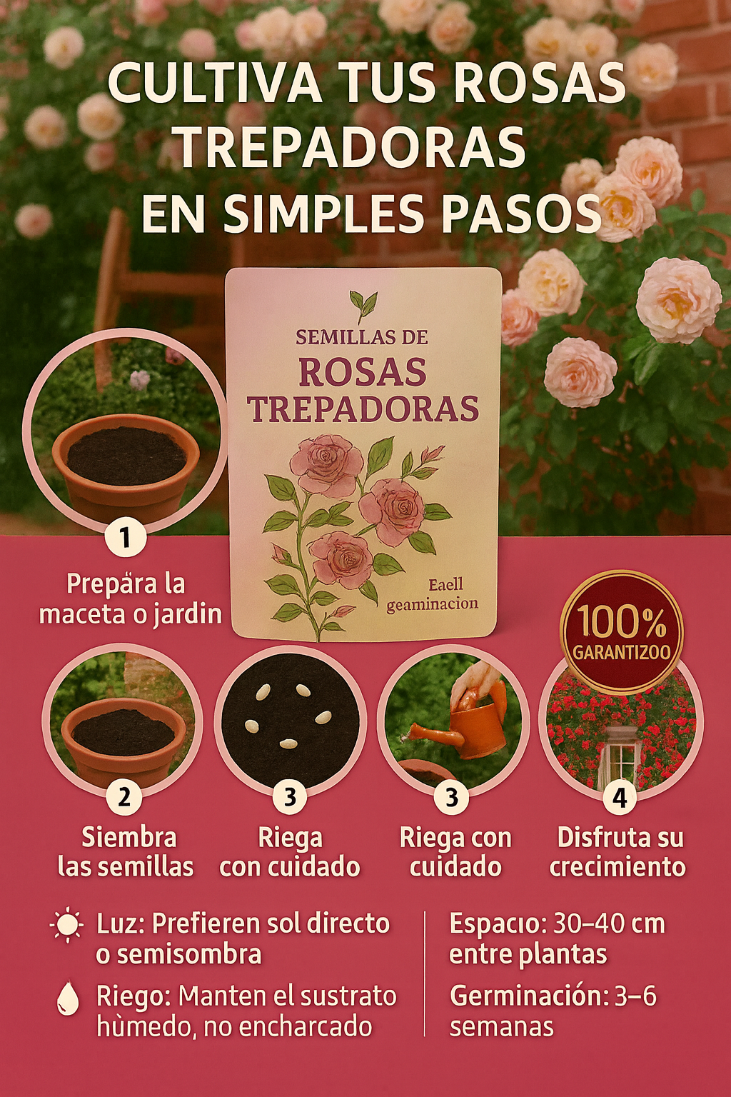 Semillas de Rosas Trepadoras Originales X 100 + GUIA Como Es El Proceso De Germinación